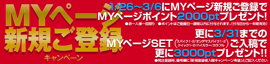 - 2026年1月22日 【ご連絡】MYページ新規登録&入稿キャンペーン2026(part.1)開催のお知らせ(2026.1.22)